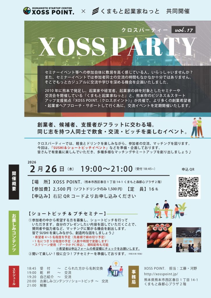 2/26(木) XOSSPOINT × くまもと起業家ねっと XOSS PARTY #17